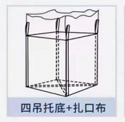3.1示意圖如上,長(zhǎng)方體噸袋,邊長(zhǎng)90cm*90cm*高110cm和邊長(zhǎng)100cm*100cm*高120cm兩種尺寸,承重1.5-2噸,四吊耳十字托底帶、圍帶及扎口布,吊環(huán)高度不低于30-35cm;