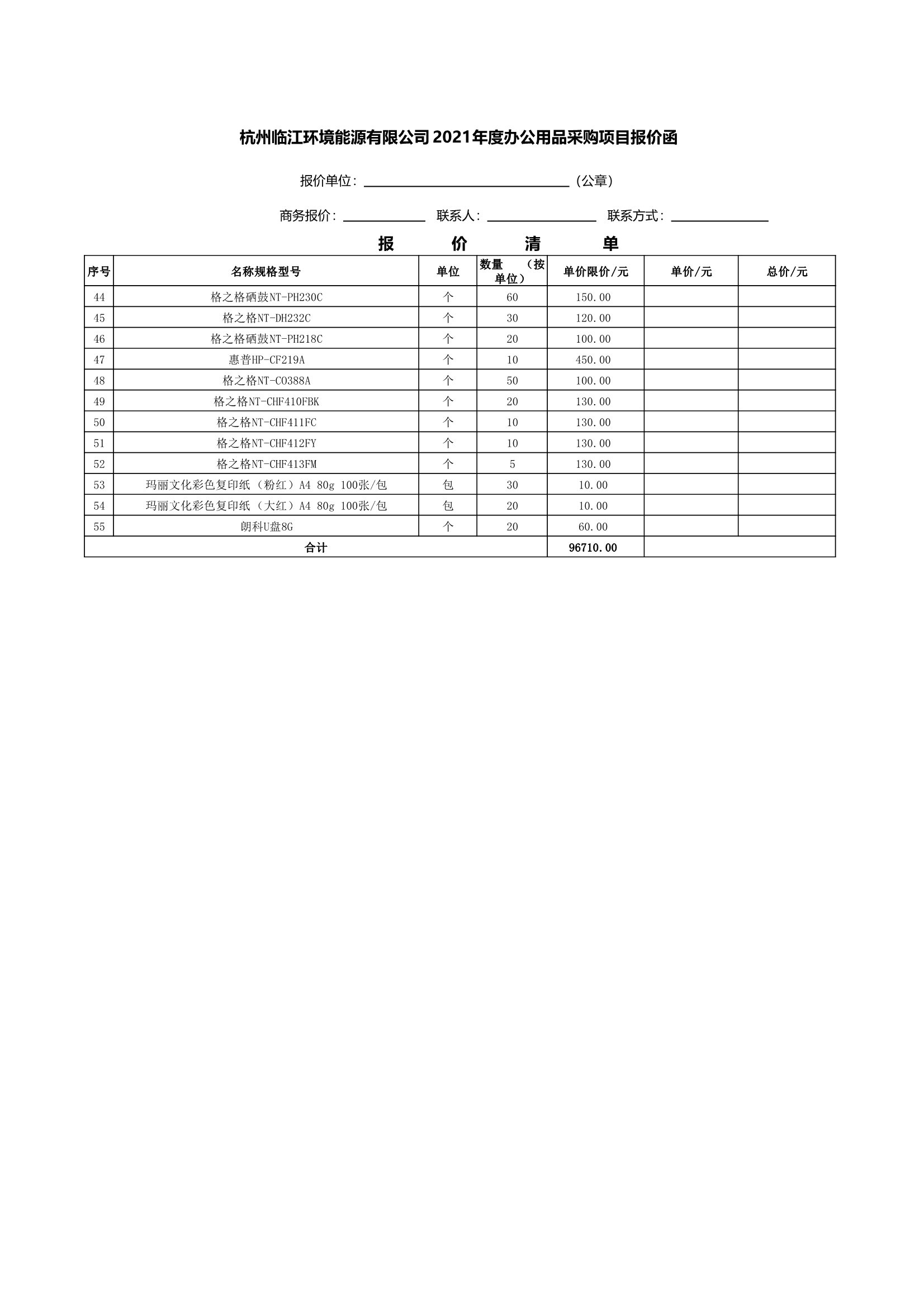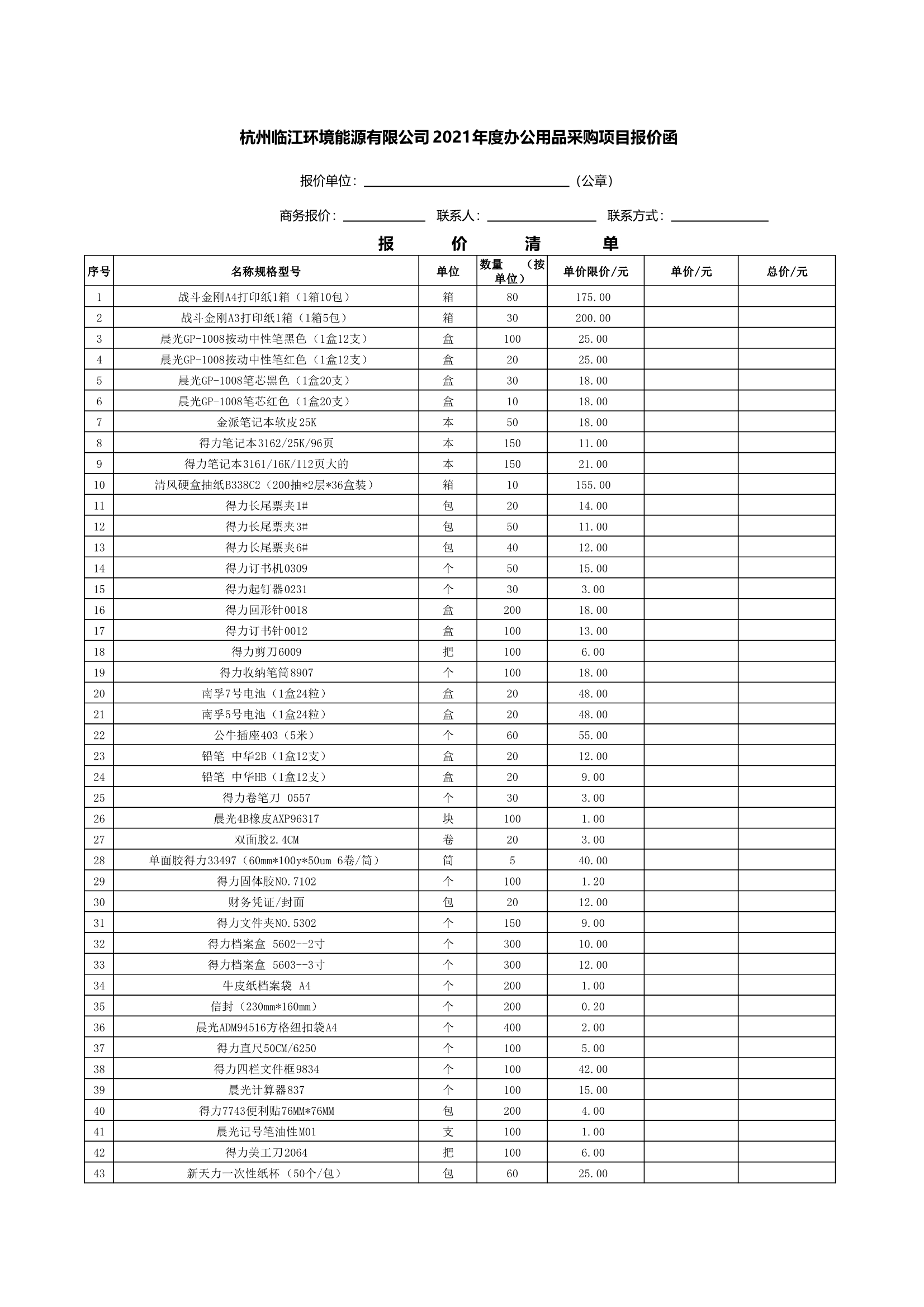 杭州臨江環(huán)境能源有限公司2021年度辦公用品采購(gòu)項(xiàng)目詢價(jià)文件.doc