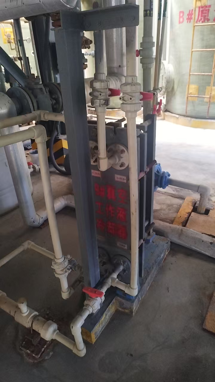 2.改造技術方案中:增加UPVC管道、DN80長度增加80米、增加DN65管道130米、DN40管道80米、DN50管道70米(管道均由采購人提供,供應商負責安裝);氟化物儲罐底部增加泵(離心泵型號:50FSB(L)-15-25/3kW-2 ,流量≥15m3/h,揚程≥25米,功率3kW-2 ,380V;增加一組波紋板式換熱器(蒸餾水冷卻器E104B/E204B,HX100A-1,材質:碳鋼,設計溫度:150℃,設計壓力:1.0MPa(G),換熱面積:10㎡,換熱板厚度:0.6mm,介質:循環(huán)水)。泵和換熱器由供應商提供并負責安裝。