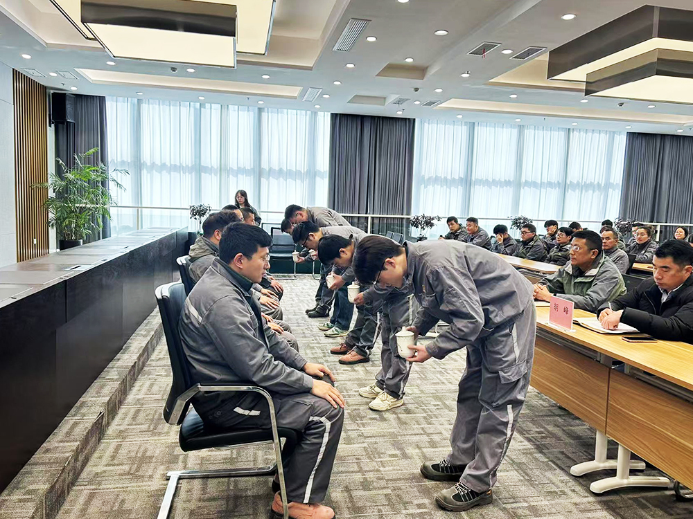 在莊重而熱烈的氣氛中,拜師儀式緩緩拉開序幕。五組師徒在主持人的熱情介紹下逐一亮相,其中,導師隊伍中還包括今日上午榮獲能源集團“能源工匠”稱號的煙氣專工王聰。通過傳統的拜師禮、敬茶儀式以及簽訂培養協議等環節,正式確立了師徒關系。隨后,三固運行中心的李迪作為導師代表發表感言,他鄭重承諾將不負公司重托,傾囊相授,無私傳授專業技術。徒弟代表周佳輝則表達了對公司提供的這次學習機會的感謝和珍視之情,他表示將虛心學習,刻苦鉆研,不斷提升自我,不辜負公司的栽培。